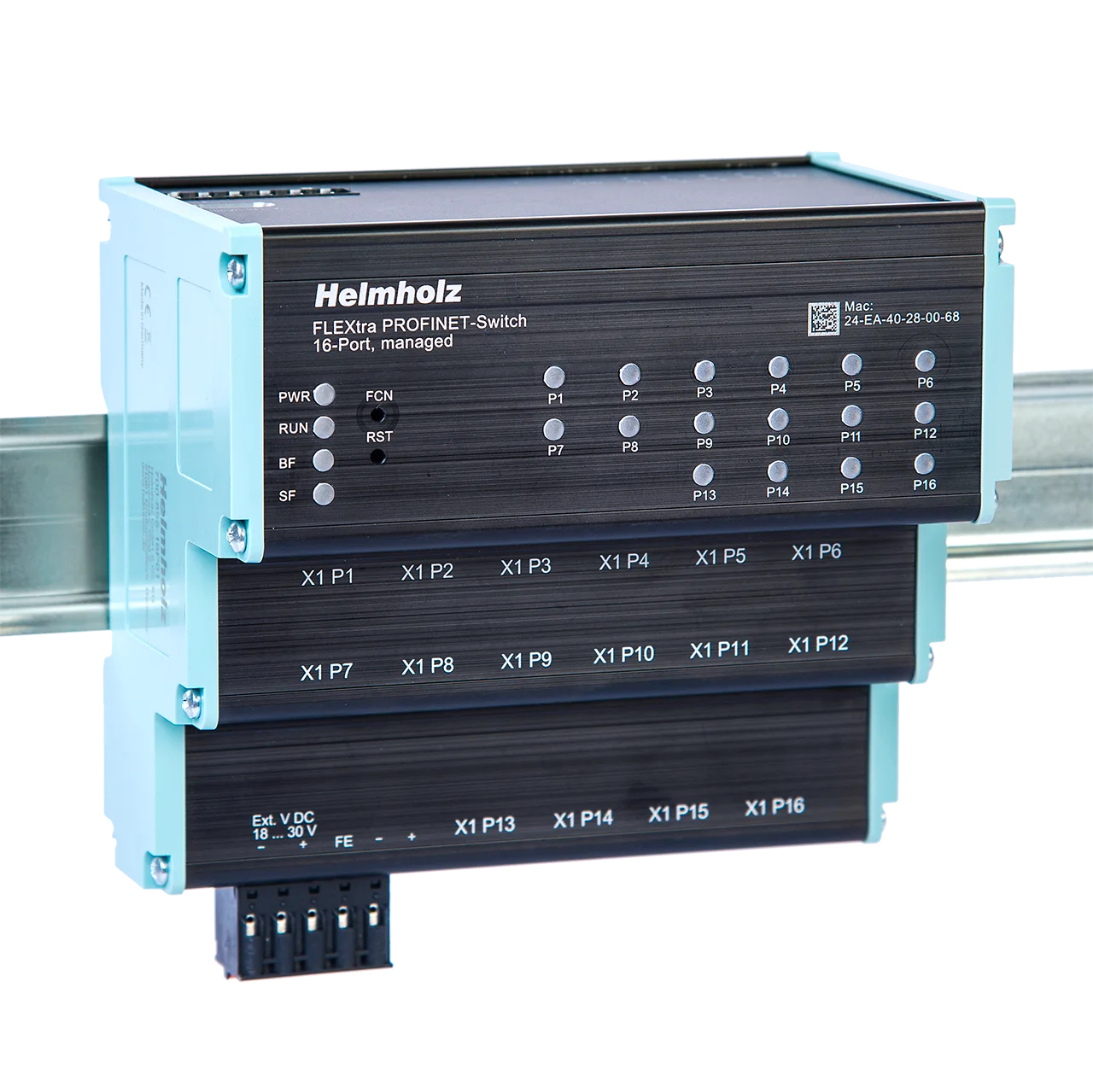 The FLEXtra PROFINET-Switch connects the control world with PROFINET according to Conformance Class B and the IT world with up to 1GBit Ethernet.